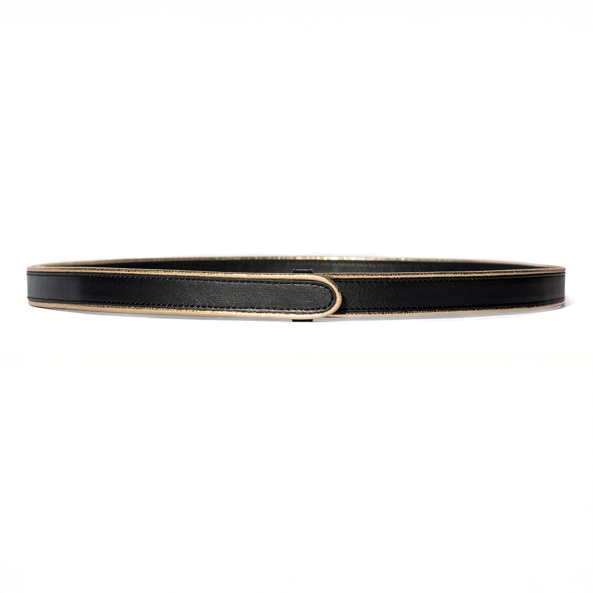 La cintura Nina si caratterizza per la sua linea sottile e l’eleganza essenziale, resa unica da un dettaglio iconico ma discreto applicato sul davanti.