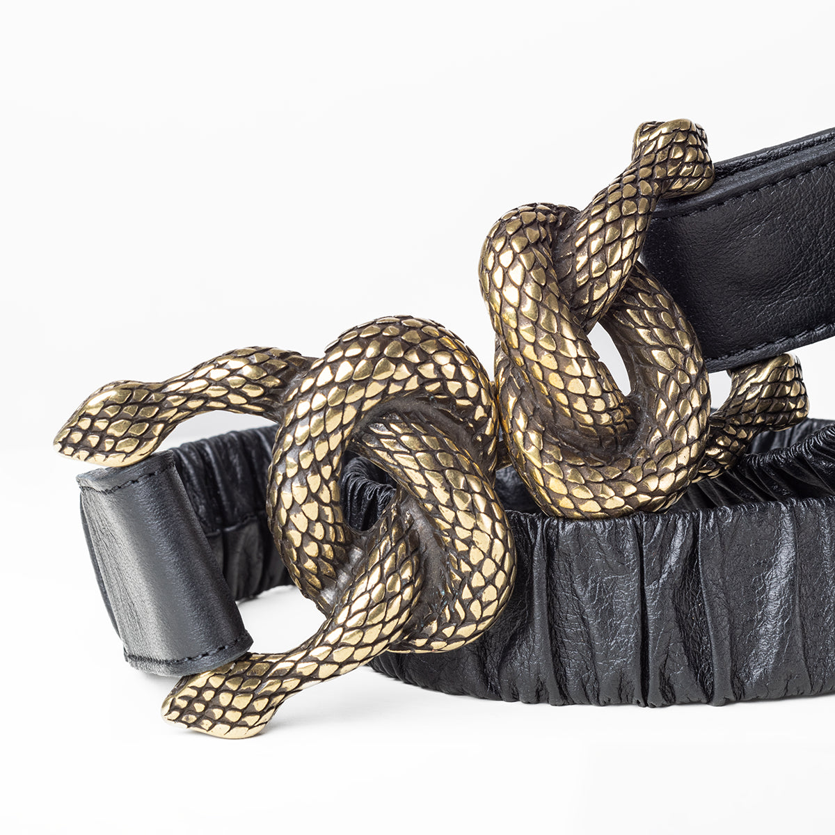 Classic passershine snake belt | Black stem - brass color buckle |